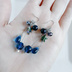 涼しげなカプリブルー色のファイアポリッシュチェコビーズとぷっくり可愛いしずく型チェコビーズにお星様の形をしたヘマタイトやキラキラ素敵なブルーゴールドストーンなどをそれぞれTピンで絶妙なサイズで合わせたお洒落な揺れるタイプに作品となっております☆ メインのお色は夜空をイメージしたブルー色、シルバー金具と合わせてスタイリッシュな雰囲気にまとめました☆ ブルー系のアクセサリーが好きな方にはもちろん、揺れるタイプのピアスがお好きな方にもおすすめです♪ ☆ファイアポリッシュチェコビーズ カプリブルー 8mm ☆しずく型チェコビーズ マリンブルークリア 9x6mm ☆ヘマタイト マルチラスター お星様カット 8mm ☆ブルーゴールドストーン(模造石) ラウンド型 6mm玉 ☆ガラスビーズ バイオレットオーロラ ボタンカット 6mm ☆メタルビーズ シルバー ☆Tピン ☆三角カン ☆丸カン ☆ピアス用金具(フック式☆ゴールド) 長さは約5.5cmとなっております。(1cm程のピアス金具を含む)