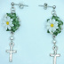 ご覧いただきましてありがとうございます。 樹脂粘土製のパーツ、パールビーズを使用したピアスです。 マーガレットの白とクローバーの緑が鮮やかで、ブーケの色合いがとってもきれいですよ♡ 十字架チャームが耳元で揺れる、華やかさのあるデザインのピアスです。 ピアス金具はサージカルステンレス製のものを使用しています。 写真ではスタッドピアス(サージカルステンレス)でお仕立てしていますが、お好きなパーツへの変更も承ります。 ご希望のパーツを選択していただきますようお願いいたします。 サフィックス社のスウェットバリアを使用しての金属アレルギー対応も可能です。 ご希望の方は右のメニューより「金属アレルギー対策有」の項目を選んでください。 ※注意※ ☆お花のパーツは樹脂粘土でできています。性質上強い力や水濡れに弱いので、やさしいお取り扱いをお願い致します。 ☆定形外郵便でのお届けのみとなります。 【Size】 全長4.5cm ・ブーケ:1.6cm×1.5cm ・パールビーズ:4mm ・十字架チャーム:1.3cm×8mm
