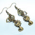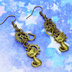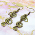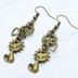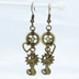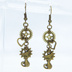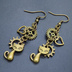 アンティークゴールド 猫と異なる歯車を組合せたスチームパンク風ピアス オープンハート