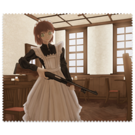 この商品はpixivFACTORYで作られた商品です。サンプル画像は完成イメージのため、実物と異なる場合があります。 ショットガンを持ったメイドさんのメガネ拭きです
