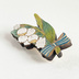 スズランの花の中にこっそりと紛れた白うさぎ。 お花と一緒にゆらゆらゆれます。 木を切り出して作ったモチーフに、一つずつ着色して作っています。 木材にはそれぞれ木目や色味の違いがあり、一つとして同じものがありません。 そんなあたたかみのある、木の風合いも楽しんで頂ければ幸いです。 また、木材のためとても軽量で、重さをあまり感じさせまん。 表面は食品衛生法にも適合したニスでコート、裏面も油性のニスでコートしております。 (お水は弾きますが、長時間水に濡れるような環境や、水場でのご使用は念のためお控えくださいませ。) 背面にはゴールドの回転ピンが付いております。 普通のブローチピンよりも外れにくく、安心してお使いになれます* 仕様------------------------------------ (ピンを含まない)5×2.7cmほど。厚みは5mmほど。 (大きさ比較画像…B5ノート) ご購入時の注意点----------------------------------- * ハンドメイド作品です * ひとつひとつ手作りのため、大きさや色などに個体差がございます。 又、傷や気泡、ゆがみなどが気になられる方は、トラブルを避けるためご購入をお控ください。 気になる事などがあればご購入前にご連絡くださいますようお願いします。 * 写真と色 * ご覧いただいているお写真と、実際の商品では少々色の違いがある場合がございます。 あらかじめご了承ください。