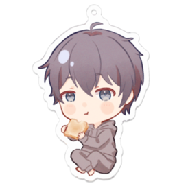 寝起きの男の子がパンを食べているイラストのアクリルキーホルダーです。