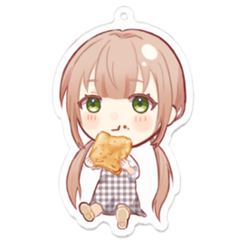 女の子がパンを食べているイラストのアクリルキーホルダーです。