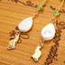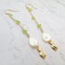 14KGF シンプルで可愛い猫シルエットモチーフのロングチェーンピアス ペリドット 淡水パール ティアドロップ