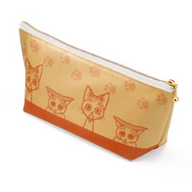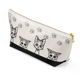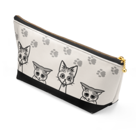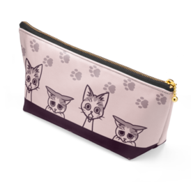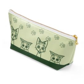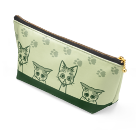 びっくり猫電之介のポーチです。 緑系、オレンジ系、紫系、白黒系の4色あります。 ファスナー、ホワイトとブラックの2色。 この商品はpixivFACTORYで作られた商品です。サンプル画像は完成イメージのため、実物と異なる場合があります。