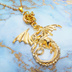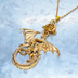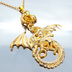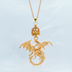 マットゴールド 翼を広げるドラゴンと歯車のネックレス ゴシック メンズ レディース