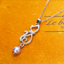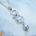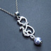 ラインストーンが輝くシルバーカラーの猫モチーフとガラスパール(シルバーグレー)の可愛いペンダント・ネックレス
