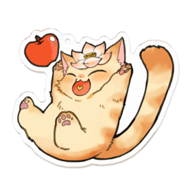 アクリルキーホルダー - 70 x 70 (mm)頭にハスの花が咲いたねこのアクリルキーホルダーです。 美味しいもの大好きな子ですので、ご飯にお供させてもらえると大喜びします。 大好物はりんご!