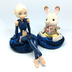 ミニチュアビーズクッション/ラウンド型 ベロア生地ロイヤルブルー・2個