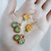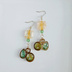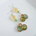 しずくと丸型レジンフレームとスクエアビーズのお洒落ピアス/イヤリング(爽やかグリーン)