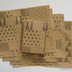 枠線の中に和柄パターンを配した紙製ブックカバーです。 ブックカバーのサイズはA4判。天地左右を折って文庫、新書のカバーとして使うことができます。 絵柄の違う3種各2枚で1セット。 正方形、六角形、三角形の枠線の中に鱗文、松皮菱、立涌、水玉、麻の葉、矢絣、紗綾形、籠目などの和柄パターンを配しました。 使用した用紙はクラフト紙(ブラウン)と再生紙(コピー紙よりやや厚く、黄味がかった白)の2タイプ。お好みのほうをお選びください。ブックカバーとして使うだけでなく、小物の包装紙、写真撮影の背景紙などアイデア次第でいろいろ活用できます。折らずに発送します。 【素材】 クラフト紙 厚さ0.11mm 再生紙 厚さ0.10mm 【サイズ】 A4判(幅297×高さ210mm)×6枚 【購入の際の注意点】 市販の用紙にレーザープリンタでモノクロ印刷したものです。 写真と実物では多少色味が異なる場合があります。