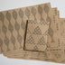 和柄の地とパターンを組み合わせた紙製ブックカバーです。 ブックカバーのサイズはA4判。天地左右を折って文庫、新書のカバーとして使うことができます。 絵柄の違う5枚で1セット。 和柄の地の中に他の和柄のパターンを組み合わせました。 1枚め 立涌の地に桜綺柄 2枚め 市松模様の地に千鳥格子 3枚め 鱗文の地に七宝 4枚め 分銅繋ぎの地に麻の葉 5枚め 菱文の地に矢絣 使用した用紙はクラフト紙(ブラウン)と再生紙(コピー紙よりやや厚く、黄味がかった白)の2タイプ。お好みのほうをお選びください。ブックカバーとして使うだけでなく、小物の包装紙、写真撮影の背景紙などアイデア次第でいろいろ活用できます。折らずに発送します。 【素材】 クラフト紙 厚さ0.11mm 再生紙 厚さ0.10mm 【サイズ】 A4判(幅297×高さ210mm)×5枚 【購入の際の注意点】 市販の用紙にレーザープリンタでモノクロ印刷したものです。 写真と実物では多少色味が異なる場合があります。