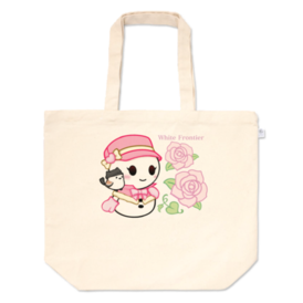 トートバッグ - L - プリント面積中創作作品「ホワイトフロンティア」のスノーマンの女の子ブランケットちゃんとシマエナガの死神ピヨちゃんのトートバッグです。 *この商品はpixivFACTORYで作られた商品です。サンプル画像は完成イメージのため、実物と異なる場合があります。