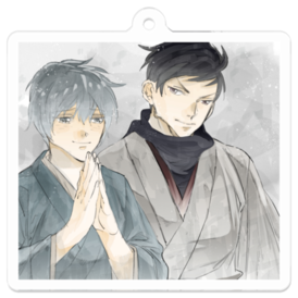 アクリルキーホルダー - 50 x 50 (mm)雪の日は、早く雪よ止んで欲しい、と涼の神頼み。阿蘇芳はそんな涼が気になっている様子。 綺麗に仕上がりました! 如何ですか?