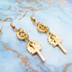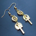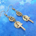 マットゴールド ロザリオ(十字架)と歯車を組合せたスチームパンク風コンパクトなピアス