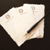 質感ふわり。 海外の職人さんがてづくりした水彩紙をつかった耳つきのレターペーパー3枚のセットです。 一枚一枚かたちが異なり、やさしい質感。 時折色の濃い繊維が入っていたりするのも楽しい、紙好きにはたまらない紙です。 こちらに板チョコの紋章と【チョコレートの魔法】の言葉を添えました。 一点一点手押ししておりますので、傾きや位置のずれがございます。かすれも合わせ、楽しんでいただければ幸いです。 大きさ:はがきサイズより1cm前後縦長 ※耳つきのため一点一点異なります 【発送】 スマートレターでお送りします。