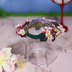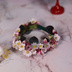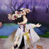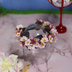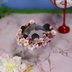 オビツろいどのための花冠です。 今季の桜、テーマは『アンティークレースみたいな桜』です。 100年前のレースや刺繍に思いを馳せて咲かせた、とっても小さな桜の花です。 桜の花は素朴なコットンと透ける薄絹を、まずアイボリーに染め、そのうえからピンク、オリーブ、エンジを重ねて染め上げました。 今までの花冠よりもかなり細い作りです。かなり自然にドールにフィットします。細いワイヤーを芯に入れてあるので全体的に柔らかい作りです。 分かりやすく説明すると、『桜の花が連なったカチューシャ』のような感じ。 上から見ると『C』の形状ですが、柔らかく、比較的柔軟に広げられるので、ありとあらゆる髪型に適応できます。 ドールのヘッドを傷つけることのないように、内側にアートモス(化繊でできた人工の苔)を貼ってあります。 開いている後ろ部分には緑色の平ゴムを通してあります。伸縮性があるのでヘッドにピッタリはまります。 上から見たときの直径・・・6cm 厚み・・・1.7cm 花のサイズ・・・8mmから1cm 布花1輪作るのはさして難しいことではありません。が!それを花冠に編み上げるのはものすごく難しい作業です。全体のバランスと配色を考え、少し組み合わせてはまた新しい色の花や蕾を作り足して試す、その繰り返しでようやく小人に似合うひとつの輪が完成します。 当工房は大好きなキャラのおびたん達が、森の中の小さなお家でお花を育てたり、畑を作ったり、お裁縫したりしてのんびり暮らしているイメージでハンドメイド活動をしています。 制作のきっかけ・・・ ちいさなドール達に合うサイズの花冠が作りたくて、最初は小さなプリザーブドフラワーやドライフラワー、造花などを集めて花冠を制作しておりましたが、いかんせんこの世界には『人間サイズ』の花しか無いので既製品や自然素材の花での制作に限界を感じ、それならば花から自分の手で作ってみよう! と思い立ったのがこちらの『小人の世界のお花』シリーズを作るきっかけになりました。 Twitter、インスタグラムで制作風景や小人の日常風景撮っております。 https://twitter.com/ninngyoumusume https://www.instagram.com/ninngyoumusume/ 堅牢度の高い(色落ちの少ない)染料を使用しておりますが、染め物ですので水濡れによる色落ちや型崩れにご注意下さい。 強度に重点を置いて制作しており、落とした程度では何ともありませんが、小人が集めてきた小さな小さなお花です。優しく扱ってあげて下さい。 『布花』は糊のきいた真っ白な生地を染色し、熱を加えて形を作る造花作りの技法です。アートフラワーとも呼ばれます。 水に濡れると花の緩やかなカーブなどの形が失われます。水洗いはできません。 明るい色ではなく、わざと古びた色合いに染めています。アンティーク加工、ビンテージ加工にご理解よろしくお願いいたします。 保管しやすいように蓋付きの円柱クリアケースに入れてお届けいたします。中が見えるのでフラワーギフトのようです。 こちらは『あんしんBOOTH』の匿名配送です。 ※当工房でのお買い物を2回に分けられた場合※ 今までは発送前に追加でお買い上げを頂きました商品に関しましては、同梱包をして余った分の送料を切手を同封することでお返しして参りましたが、商品数の増加に伴いまして個別での対応が難しくなってまいりました(例・300円分の切手を複数のお客様に常にご用意する、梱包が済んでしまったお品物を開封して2つまとめた梱包をし直す 等)。 誠に勝手ながら、今後はご注文ごとの梱包・発送に替えさせていただきます。予めご了承くださいませ。