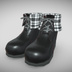- 裏地がグレイチェックのショートブーツを折り返したタイプの靴です。 - 靴ひもは独立したメッシュになっていますが厚さはありません。高級感を保ちつつ、ポリゴン数を節約したデザインです。 - ブーツのみです。キャラクターは含まれません。 - VRoid Studio出力の「VRM」モデルに合うよう調整していますが、完全にフィットすることは保証しません。 - サンプル画像での質感はMToonシェーダーか、sketchfabのビューアーで表示したものです。他のシェーダーで再現できるか確認していませんので、あらかじめご了承ください。 - 'FBX'形式の3Dモデルと、'PNG'形式のテクスチャー、ノーマルマップが同梱されています(皮の質感用のサンプルとしてMToonシェーダー等で使用できるmatcapも同梱しています)。 - ※靴紐のテクスチャは透過色で切り抜いていますので、マテリアル設定時にはアルファクリップをご指定ください。 - FBXには左右両方入っている物だけです。右用、左用に別れていませんのでご了承ください。