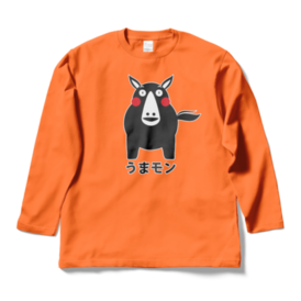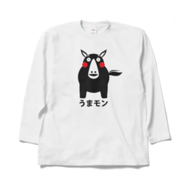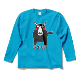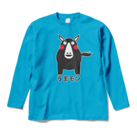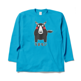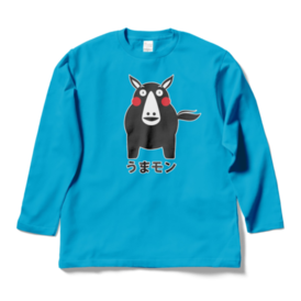 ロングスリーブTシャツ - XL - ターコイズこの商品はpixivFACTORYで作られた商品です。サンプル画像は完成イメージのため、実物と異なる場合があります。 青鹿毛のサラブレッドをモチーフにしたゆるキャラデザインイラストです
