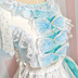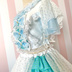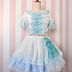 白色と水色でまとめた、ふわふわしゅわしゅわなオリジナルのアイドル衣装です! 上下が分かれたセパレートタイプです。 上は後ろのファスナーで着脱ができます。 脇のレースアップで絞ることができるので、お好みのフィット感にできるかと思います。 上半身にのみ、裏地が付いております。 下はゴムスカートになっています。 ゴム通し口がありますので、そこからゴムの調節をすることが可能です。 【サイズ】 女性用9号サイズ(Mサイズ相当)のトルソーに合わせて制作をしております。 ・バスト→約88cm ・ウエスト→約74cm(脇のレースアップ部分で絞ることができます。) ・首周り→約57cm ・スカートウエスト→約60cmのゴムが入っています。最大約120cm程度まで伸びます。 ・スカート丈→ウエストから約47cm 素人による採寸の為、多少の誤差が生じる場合がございます。 【注意事項】 ・ご利用のディスプレイの環境により、色味が違って見える場合がございます。 ・生地に伸縮性はありませんので、激しい動きなどをされる際はお気を付け下さい。 ・写真ではスカートの下にパニエを着用しております。パニエは商品には含まれません。 ・素人による制作ですので、既製品のようなクオリティには劣ります。 ・犬がいる所へ出入りしている為、アレルギーがある方はお気を付け下さい。