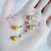ちょっぴり大きめサイズの和を感じるゴールドラインが施されたうぐいすカラーの唐草ビーズをメインにミルクベージュとゴールド系の少し小さめサイズのガラスビーズとぷっくりした形が可愛いしずく型チェコビーズが耳元でゆらゆらと揺れるお洒落なピアスとなっております。 メインのお色は温かみのある大人っぽさを感じるイエロー色、ゴールド金具と合わせてオールシーズンご利用頂ける肌に馴染む色合いでまとめました☆ シンプルに合わせたビーズ達がそれぞれキラキラと輝く素敵な作品に仕上がっております♪ 和をイメージして作りましたので、普通のお洋服にはもちろん、浴衣や着物など和装の服にも合うと思います☺ アレルギー対応のピアスやイヤリングへの変更についてはご注文時にオプションよりご希望金具をお選び下さい☆ ※こんな方におすすめ♪ *大切な方へのプレゼントに *揺れるピアスがお好きな方に *イエローやゴールド色がお好きな方に *プチプラ価格でファッションコーデをまとめたい方に ☆唐草ビーズ うぐいす ラウンド型 8mm玉 ☆ガラスビーズ フルコートゴールド ボタンカット 4mm ☆ガラスビーズ ミルクベージュ フラットコイン 4mm ☆しずく型チェコビーズ マスタードイエロー・オペーク 9x6mm ☆メタルビーズ ゴールド ☆スペンサー ゴールド ☆丸カン ☆Tピン ☆9ピン ☆ピアス用金具(フック式☆ゴールド) 長さは約6cmとなっております。(1cm程のピアス金具を含む)