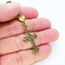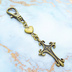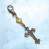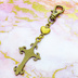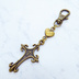 アンティークゴールド ロザリオ(十字架)とハートを組合せたキーホルダー バッグチャーム 金具変更可