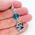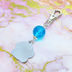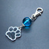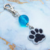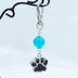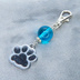 シルバーカラーの肉球とガラスビーズ(レイクブルー)を組合せたキーホルダー バッグチャーム 猫 犬