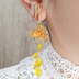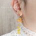 《素材》 ・レジン ・金具:ゴールドカラー ・チェコビーズ 《サイズ》 フラワーパーツ 横約22mm 縦約20mm イヤーカフ 約18mm×25mm 下がりパーツ部分全長 約60mm 片耳用(右耳用)になっております。 隙間のサイズは約4mmとなっております。 黄色のリコリスイメージのイヤーカフです(^^) こちらのイヤーカフのドロップビーズは他のイエローリコリスのピアスやイヤーカフよりも黄色味がレモン色のようなイエローになっております。 一つ一つ色を調整して着色しておりますので 色合いに差があります事を御理解お願い致します。 一つ一つ丁寧に作成しておりますがレジンの中に気泡・ホコリ・塗りムラ等がみられる場合がございます。強い力が加わると破損してしまいますのでお取り扱いに御注意を願います。 ※特に表示がない場合の使用パーツは真鍮・合金・メッキ加工されたものですので金属アレルギーをお持ちのお客様はご注意ください。 ※体質によって、かゆみ・かぶれを生じる場合がありますので、皮膚に異常を感じたときは、ご使用をお止めいただき専門医にご相談ください。 ※力仕事や激しいスポーツをする時、就寝時や幼児の世話をする時など、身体に危害を及ぼす場合がありますのでアクセサリーをはずしてください。 ※サウナ等高温の場所、あるいはスキー場等極寒地でのピアスなどのアクセサリーの使用は、火傷、凍傷の原因となる場合がありますので、着用しないでください。 ※掲載している写真は実物に近づけるように努力しておりますが、ご覧になるモニターや環境により実際の色合いと多少異なって見える場合があります。予めご了承ください。 ※当サイトの写真・画像・文章等の無断転載使用及びデザインの複製や商用利用の引用は固くお断りさせて頂きます。