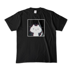 グリッチノイズねこTシャツ(黒)