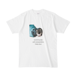 Tシャツ - XL - 白我が家の猫、ハクがうんち踏んで足を洗われている時の写真のTシャツです。 この商品はpixivFACTORYで作られた商品です。サンプル画像は完成イメージのため、実物と異なる場合があります。