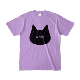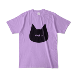 【ライトパープル】シンプルでかわいい猫柄Tシャツ 黒猫 男女兼用 レディース メンズ ユニセックス