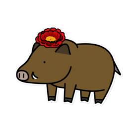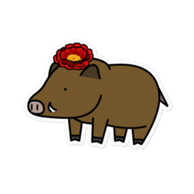 頭に牡丹が咲いてしまったイノシシさんステッカー