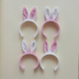 バニーちゃんカチューシャ、いちごとミルクです。 無加工の画像ですが、モニターによる色味の差異はご了承ください。 10cmのぬいぐるみ向けに制作しております。 (12cmサイズでも大丈夫かと思いますが、所持しておらず、着用感がいまいちわかりません。すみません!) ハンドメイドになります。粗い部分もあるかと思いますので、気になる方はご遠慮下さい。 同じ商品でも、模様の出方やカチューシャのカール具合に個体差があります。 着用画像については、Twitterをご参照ください。 宜しくお願い致します。 ******** BOOSTとても嬉しいですが、お礼などはご用意出来ません。お気持ちだけで十分です!ありがとうございます!!