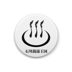 石川銭湯王国缶バッジ お馴染み温泉マークの湯気を表す縦三本線は石川県を引っ張ってうねらせました この商品はpixivFACTORYで作られた商品です。サンプル画像は完成イメージのため、実物と異なる場合があります。