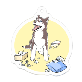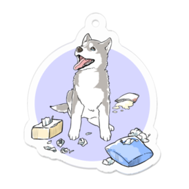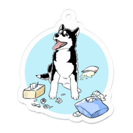 イタズラハスキーアクリルキーホルダー 黒銀赤