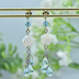 蛮神・氷神シヴァをイメージした耳飾りです。 シェルでできた薔薇を履行技に見立て、氷の欠片のようなクリスタルガラスのビーズや、涼し気な色のチェコドロップビーズを飾り付けました。 全体的に小さめで使いやすい仕上りです。 6/25頒布開始予定 頒布予定数:1 こちらは両耳分でのお譲りとなります。 金具のご指定がない場合、ポストピアスでのご用意です。 シェルでできた薔薇と氷のような水色のクリスタルをトップに据えて、小さな耳飾りをお仕立てしてみました。 シェルの下には水色と淡いグリーンのミックスカラーが美しい、小さなチェコドロップビーズを飾っています。 チェコビーズをチェーンでつないでいるので、動きに合わせてゆらゆらと動く、儚げで可愛らしい耳飾りに仕上がりました。 長さ:約4.5㎝ ※フックピアス/樹脂フックピアスへの変更は無料で承ります。 ご希望の場合はメッセージでご連絡ください。 ※アレルギー対応ピアスやイヤリングへの変更をご希望の場合には、以下のオプションを同時にご購入ください。 ・サージカルステンレス製金具に変更 https://yuu3004.booth.pm/items/4335135 ・ピアス・イヤリング金具 変更オプション https://yuu3004.booth.pm/items/4858199 ※こちらは二次創作のファングッズであり、著作権者その他関係者様とは一切関係がございません。ご理解のある方のみご購入をお願いいたします。