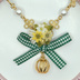 ご覧いただきましてありがとうございます。 樹脂粘土製のパーツ、パールビーズ、かごチャーム、リボンを使用したネックレスです。 かごチャームの中に4mmのカルセドニーが2個入っています。 ネックレストップが大きめなので、首元を華やかに飾ってくれますよ! 大きめに結んだチェック柄のリボンがポイントです。 このネックレスのデザインはこれまでに出展してきたイベントでも好評でした♡ ※注意※ ☆お花のパーツは樹脂粘土でできています。性質上強い力や水濡れに弱いので、やさしいお取り扱いをお願い致します。 ☆定形外郵便でのお届けのみとなります。 【Size】 チェーン:45~50cm(アジャスター:5cm) ・パールビーズ:6mm ・コネクター:8mm ネックレストップ: ・ブーケ:約1.7cm×1.8cm ・カルセドニー:4mm ・かごチャーム:1.1cm×1.1cm