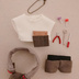 原画展佐野真一郎ぬいぐるみサイズのセットアップです。 ストレッチ素材のシャツの袖口に適度な圧がかかるので工具を差し込んで持たせることが出来ます。 いろいろな組み合わせで自由に着こなしを楽しめます。 ★内容品 ●ネックレス×1 ●キャンディ×2(色は赤、レインボー、青、茶などもあり) ●工具×3種(全6種のうち3種。1枚目写真のスパナは写真5枚目のハンマーになる場合もあり。) ●ポーチ付き白Tシャツ×1 ●パンツ×1 ●腰結びつなぎ風アタッチメント×1 ※パンツは真一郎の太ももサイズで製作しているのでボンタン着用のマイキーぬい等にはややキツめです。その他の10センチ〜12センチぬいには別売りのストライプパンツ等と組み合わせての着用を推奨します。