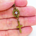 フラットな形状のロザリオ(十字架)と歯車を組合せたコンパクトなピアスです アンティークゴールドでカラーをまとめて落ち着きと優しさのあるピアスに仕上がっています 歯車の中心にはラインストーンをはめこんで輝きをプラスしています 程よくコンパクトでスリムなピアスなので普段使いはもちろんのことちょっとしたお出かけにもジャマにならずおすすめのアイテムです ※別カラーバージョンもございます ※モチーフは亜鉛合金にメッキ加工、金具などはスチール製ですので、金属アレルギーの方はご注意ください ※こちらはフックピアスをネジバネ式イヤリング(アンティークカラーの丸皿タイプ)に変更が可能です 「素材」 チャーム:亜鉛合金:メッキ加工 ラインストーン スチール・合金(金具など) 「寸法」 全長(ピアス金具含まず):約43mm ロザリオサイズ:約18mm×8mm 歯車サイズ:直径約16mm 重量:(一個で)約4.1グラム 【ご注意】 ※ご使用のモニターの色の違いにより、実際の商品と色味が若干異なる場合がございます NA-ER139