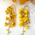 ***** こちらはイヤリングへ変更可能商品です **** 購入時にご連絡いただければ、 ねじバネ式イヤリング(合金)に 変更してお送りいたします。 *************************************************** オレンジと黄色の中間の山吹色の お花が沢山ついたピアスです。 お花のパーツは指で押しても変形しないので、 メタルパーツにカラーペイントを施している物だと 思います。 薄いパーツなので重さはそれほどありません。 軽やかに耳元でゆれます。 ピアスの金具から下がった部分の長さ 6.5 cm ☆ お箱に入れ、リボンをかけてお届けいたします ☆ ୨୧・・・・・・・・・・・・୨୧・・・・・・・・・・・・・୨୧・・・・・・・・・・・・・୨୧・・・・・・・・・・・୨୧ 当店のデフォルトの商品配送方法は、追跡番号付きの 郵便局のクリックポストとなっております。 ポストインが不安な方は差額分をプラスして対面手渡しの レターパックプラスに変更もできます。 差額分専用ページ https://roserain.booth.pm/items/6104624 どちらも発送後、追跡番号をお知らせいたします。 ***土日祝は業務をお休みさせていただきます*** ୨୧・・・・・・・・・・・・୨୧・・・・・・・・・・・・・୨୧・・・・・・・・・・・・・୨୧・・・・・・・・・・・୨୧