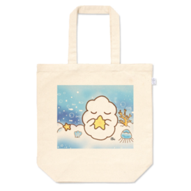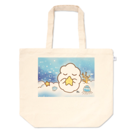 トートバッグ - M - プリント面積中「海のもふもふさん」 キラキラ輝く海の中に、ふわふわとした存在感を放つかわいらしい生き物が!この愛らしい姿に思わず目を奪われます。鮮やかな色彩と柔らかな触り心地が、心を癒してくれます。まるでふわふわのぬいぐるみが海中に飛び込んだような光景です。この可愛さに抗うことはできません!寄せては返す波とともに、穏やかなビーチでほっと一息つく時間が始まります。自然の神秘が息づく海の中で、このもふもふさんとの出会いはまさに癒しのひととき。心身のリフレッシュに最適です。写真を撮る度に、自然界の美しさに感動が蘇ります。もしかしたら、あなたもこのもふもふさんと特別な瞬間を共有することができるかもしれません!海のもふもふさんと一緒に、幸せなひとときを過ごしましょう