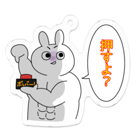 この商品はpixivFACTORYで作られた商品です。サンプル画像は完成イメージのため、実物と異なる場合があります。 まゆげうさぎくんが悪い顔をしてボンバー!ボタンを押そうとするアクリルキーホルダーです イラスト部分が不透明で、余白部分はクリアになっている仕様です。