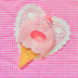 フェルトで作った柔らかいアイスにリボンが付いたボンボンチェリーをトッピングしました。