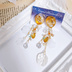 【伯仲】鉱石風カボション&フラワーチェーン 3wayピアス -Gold ver.-