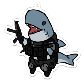 あのサメ(のような生き物)のアクリルキーホルダーです。 上記画像のイメージ図よりも暗い色合いになっている(青色の部分が濃い青になっている・黒い服の部分などが真っ黒になっている)など色味が異なるのでご注意ください。 この商品はpixivFACTORYで作られた商品です。サンプル画像は完成イメージのため、実物と異なる場合があります。