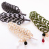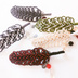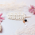 鳥太刀5振りをイメージして製作した羽根のバレッタです。 鶴丸、鶯丸、小烏丸、姫鶴、山鳥毛の5振りになります。 土台は透かし付きのバレッタ(クリップ部分のみ6cm程度)です。 水引は羽根結びになっており、コーティング剤を塗布してあります。多少形崩れや水濡れに強くはなりますが、防水効果が高い訳ではありませんので雨などにはお気をつけください。 左下にイメージに合わせたスワロフスキー2粒とチェコビーズがあしらってあります。 割れ物になりますのでお取扱にはお気をつけください。 パーツ在庫の関係で、鶴丸のみバレッタ金具がシルバー、他金具が金になっております。 また、少しずつ作るたびに表情やパーツカラーが異なっていますので、単体のお写真をご確認の上ご購入お願いいたします。