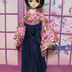 ◆セット内容◆ *着物 素材:綿 袖部分のみ白色の裏地がついています。 胸元の伊達襟をスナップボタンで留める仕様です。 ひざ上までの短い丈です。 *帯 素材:綿 マジックテープで留める作り帯です。 *袴 素材:綿 紐は前後スナップボタンで留める仕様です。 布の端はロックミシンで処理しています。