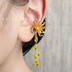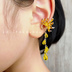 《素材》 ・レジン ・金具:ゴールドカラー ・チェコビーズ 《サイズ》 フラワーパーツ 横約22mm 縦約20mm 全長 約60mm イヤーカフのリング部分直径 約11mm 片耳用になっております。 隙間のサイズは約4mmとなっております。 片耳用(左耳用)になっております。 隙間のサイズは約4mmとなっております。 黄色のリコリスイメージのイヤーカフです(^^) こちらのイヤーカフのドロップビーズはイエローリコリスのピアスやイエローリコリスイヤーカフⅡよりも黄色味がレモン色のようなイエローになっております。 一つ一つ色を調整して着色しておりますので 色合いに差があります事を御理解お願い致します。 丁寧に作成しておりますがレジンの中に気泡・ホコリ・塗りムラ等がみられる場合がございます。強い力が加わると破損してしまいますのでお取り扱いに御注意を願います。 ※特に表示がない場合の使用パーツは真鍮・合金・メッキ加工されたものですので金属アレルギーをお持ちのお客様はご注意ください。 ※体質によって、かゆみ・かぶれを生じる場合がありますので、皮膚に異常を感じたときは、ご使用をお止めいただき専門医にご相談ください。 ※力仕事や激しいスポーツをする時、就寝時や幼児の世話をする時など、身体に危害を及ぼす場合がありますのでアクセサリーをはずしてください。 ※サウナ等高温の場所、あるいはスキー場等極寒地でのピアスなどのアクセサリーの使用は、火傷、凍傷の原因となる場合がありますので、着用しないでください。 ※掲載している写真は実物に近づけるように努力しておりますが、ご覧になるモニターや環境により実際の色合いと多少異なって見える場合があります。予めご了承ください。 ※当サイトの写真・画像・文章等の無断転載使用及びデザインの複製や商用利用の引用は固くお断りさせて頂きます。