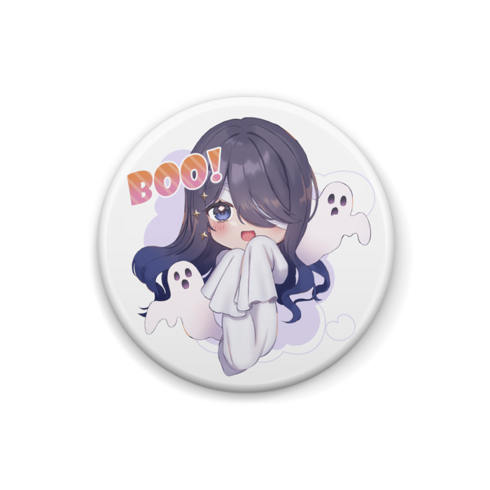 おばけに仮装した霧月リルのかわいい缶バッチです。 この商品はpixivFACTORYで作られた商品です。サンプル画像は完成イメージのため、実物と異なる場合があります。