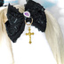 【完成品】【一点物】《☥》パープルハートビジュー付き たれうさ耳ロリィタヘアクリップ(カラー▷白×黒)